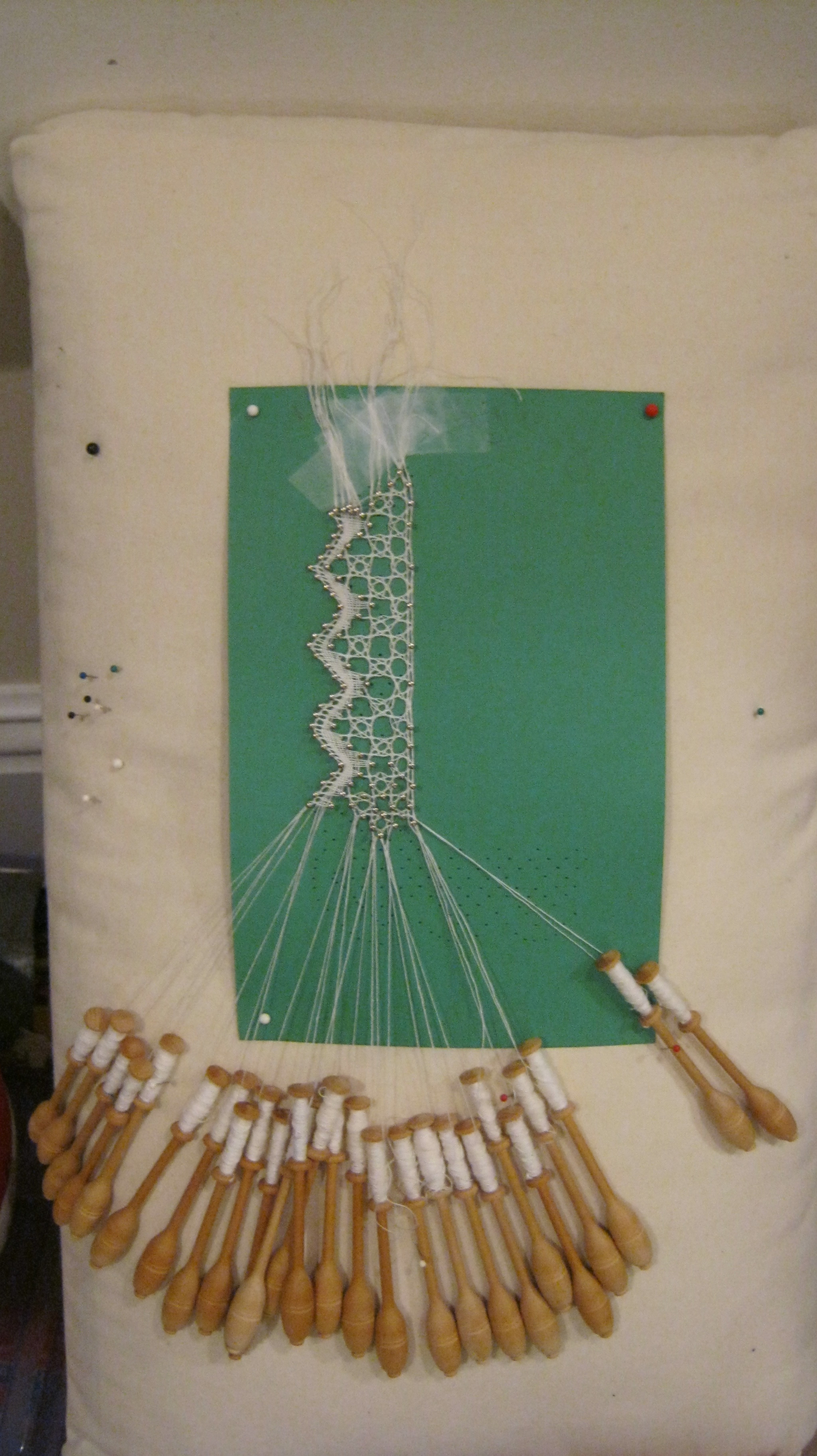 First project in Shepherd’s book, and my first attempt at bobbin lace. Not too impressive